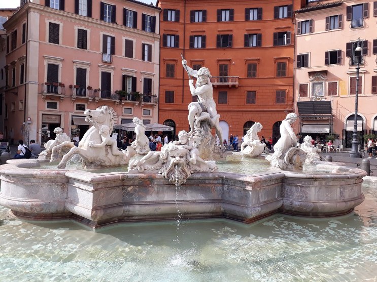 Die Fontana di Trevi ist mit einer Höhe von 26 Metern der berühmteste und größte Brunnen in Rom. Er wurde im spätgotischen Stil nach einem Entwurf von Nicola Salvi erbaut und bildet den Meeresgott Oceanus ab. Man sagt sich, wer rückwerts eine Münze in den Brunnen wirft, wird eines Tages nach Rom zurückkehren. Im Sommer zählt der Trevi Brunnen mehrere Tausend Besucher am Tag.